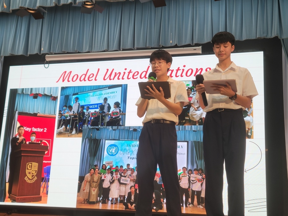 Next, S.2C Lee Tsz Lok and Tse Sum Yi offered parents a glimpse into the vibrant school life at CDG, detailing the diverse extracurricular activities available. This presentation illustrated the numerous opportunities their children could explore and engage with during their time at our school.