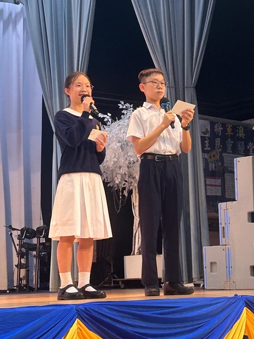 The event commenced with Principal Chui, who introduced the school and highlighted our academic and non-academic achievements, values, and commitment to student development. Following this, S.4C Cheung Chi Yu and S.4D Alvin Tse captivated the audience by sharing their experiences of learning English through the school-based curriculum. They showcased their talent and creativity with a recording of their English dramatic duologue performance, demonstrating their proficiency in the language.