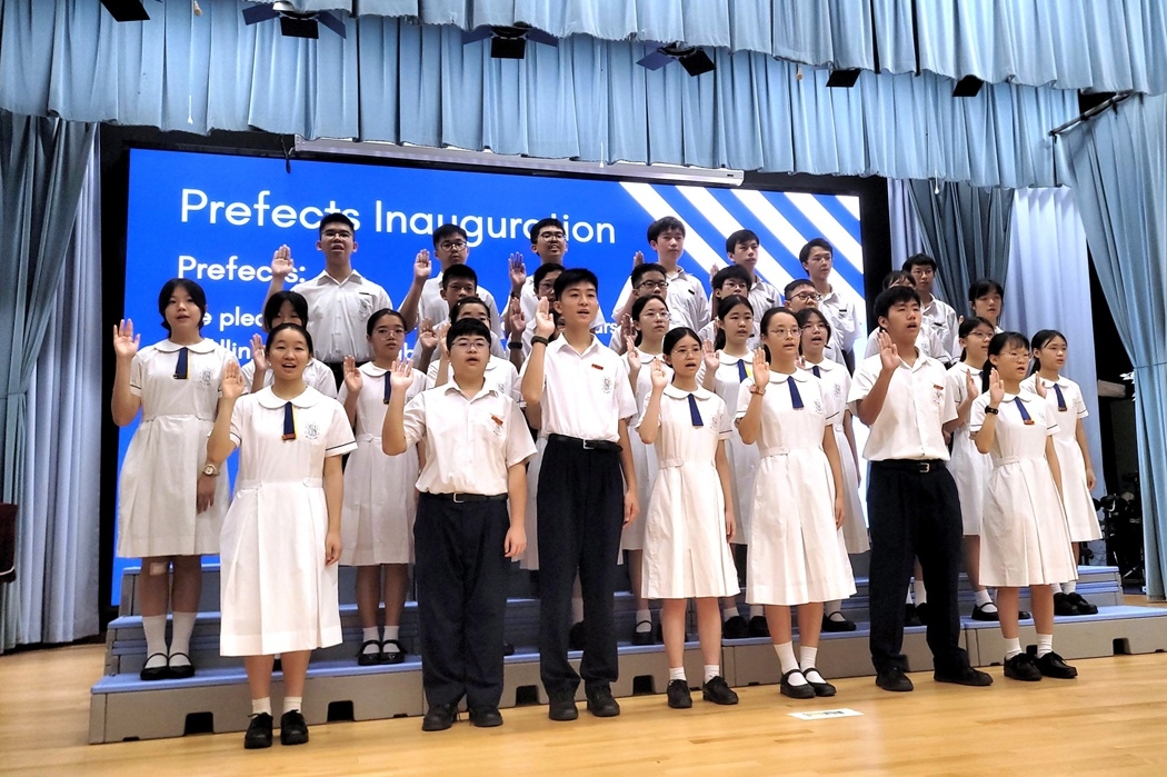 After taking the oaths, our new head prefects, S.5C Elsa Koon and S.5D Jessica Wang, addressed the assembly, encouraging all students to be guardians of their peers and the community.