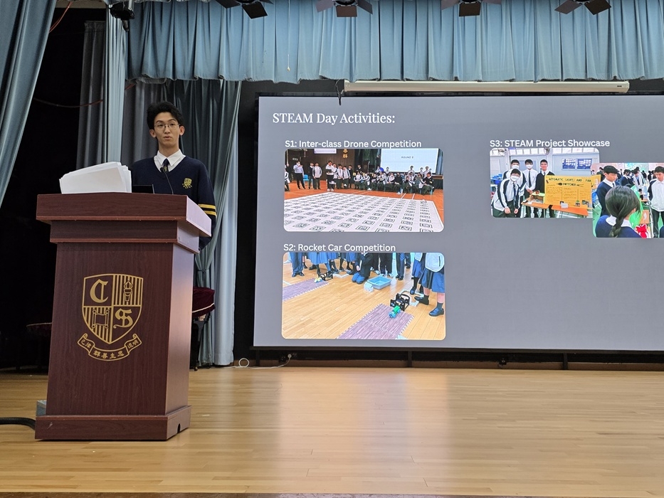 - S.3: During the STEAM project showcase, students presented inventions designed to improve society and school life, showcasing their final products to fellow students, teachers, and guests.
