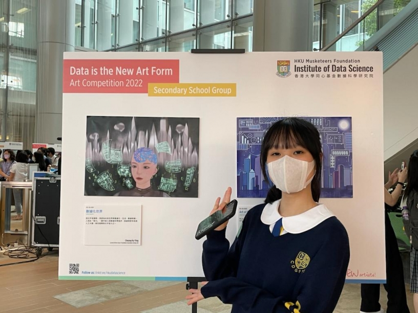 17 Jun, 2022S3D Cheung Ka Ying took part in “Data is the New Art Form” Art Competition 2022 held by The Institute of Data Science, The University of Hong Kong. A judging panel comprising senior management members of the university and academics from the Faculty of Arts selected the artworks for display from all entries.