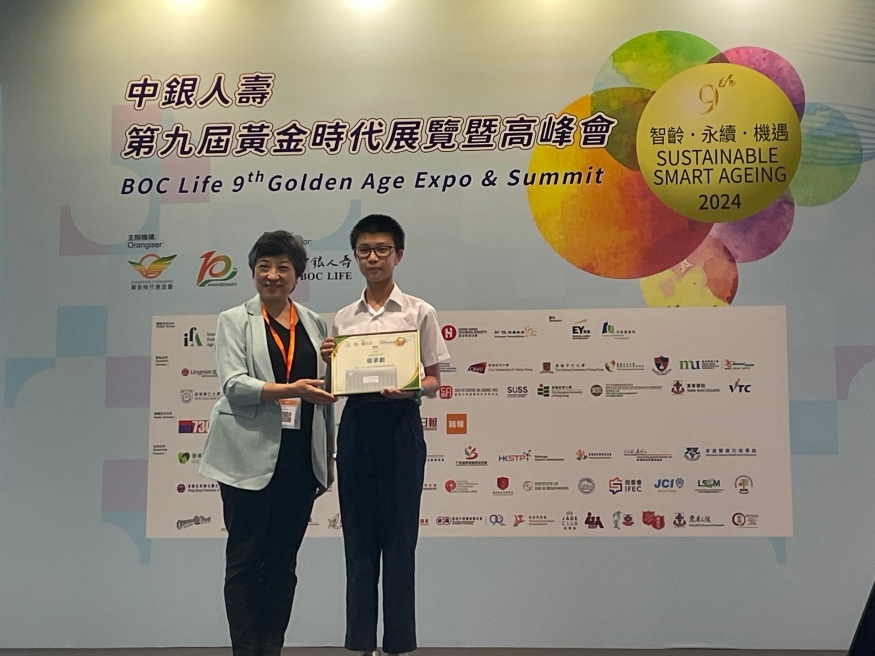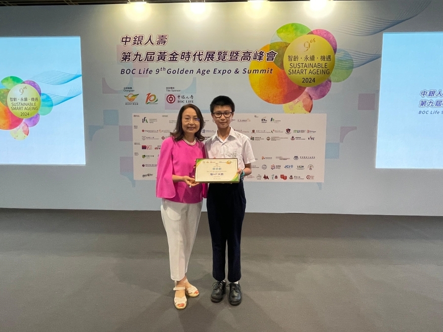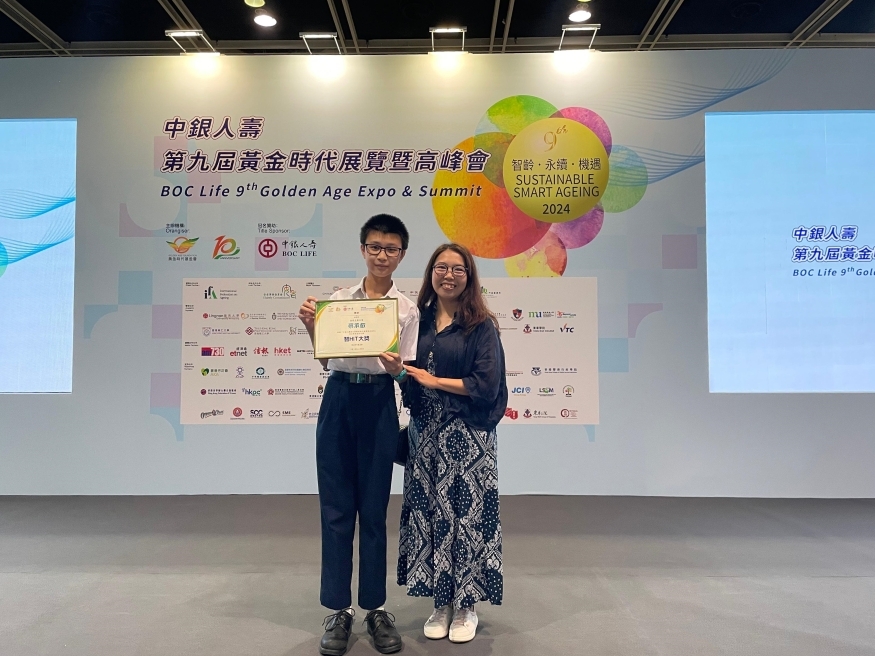 05 Aug, 2024Our S.1 student Choy Shing Yui participated in "BOC Life 9th Golden Age Expo and Summit" My Bus Design Competition 2024, organised by the Golden Age Foundation and Bank of China. The competition aims to promote a corporate culture of sustainability. Choy’s work was shortlisted and ultimately won the 'Smart HIT Award.' The award ceremony was held at the 9th Golden Age Expo and Summit at the Hong Kong Convention and Exhibition Centre. Congratulations to him!