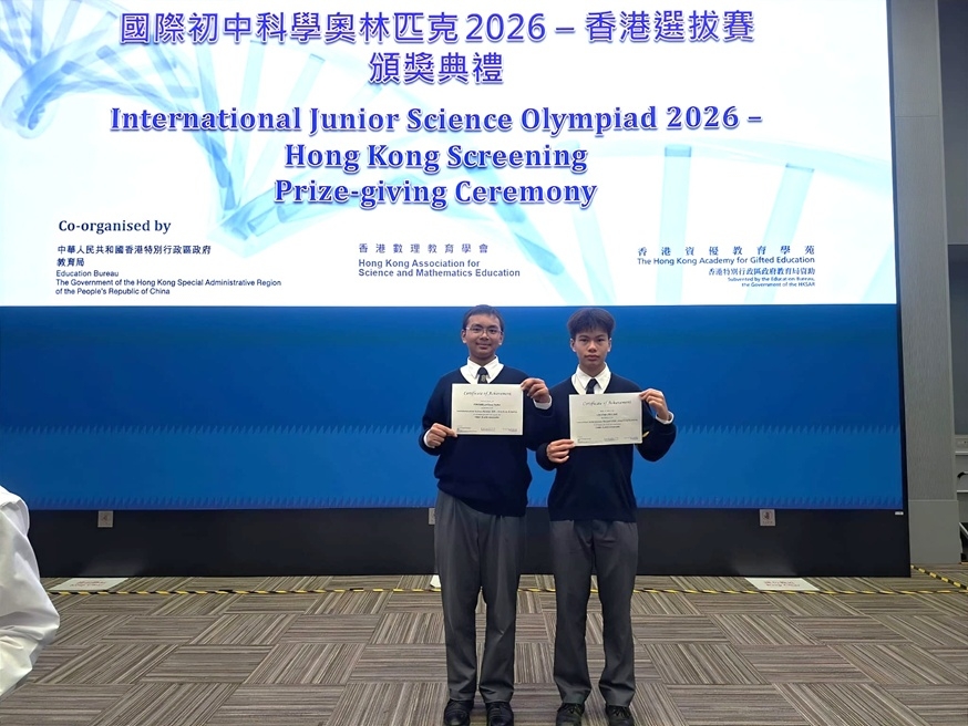 04 Feb, 2026We are proud to announce the outstanding achievements of our students in the International Junior Science Olympiad (IJSO) 2026 – Hong Kong Screening. S.3D Fontanilla Ronel Rullan was awarded First Class Honour, while S.3C Lau Chak Chiu Jack received Third Class Honour.