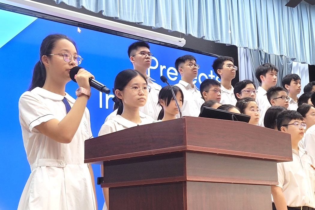 After taking the oaths, our new head prefects, S.5C Elsa Koon and S.5D Jessica Wang, addressed the assembly, encouraging all students to be guardians of their peers and the community.