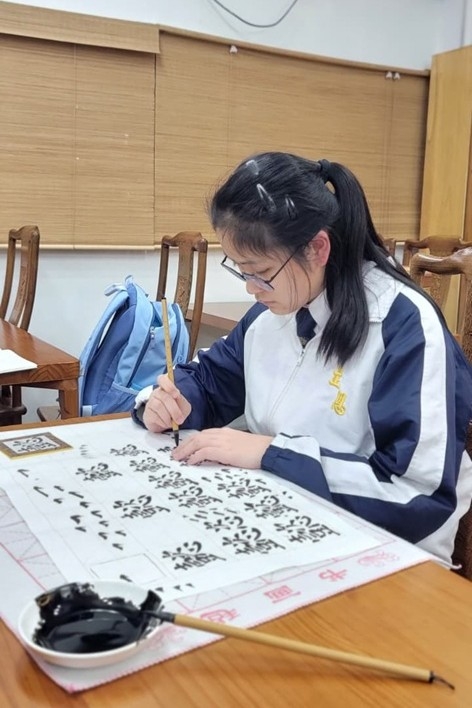 2025-12-03 Dec, 2025The Chinese Calligraphy Course, co-organised by the Chinese Language, Chinese History, and Visual Arts Departments, successfully concluded on 3 December 2025. This activity consisted of six sessions and aimed to cultivate students' interest in traditional Chinese calligraphy, thereby enhancing their cultural literacy. A total of eight students from S 1 to S5 participated in the course, diligently learning basic strokes and brush techniques, ultimately completing small creative works.