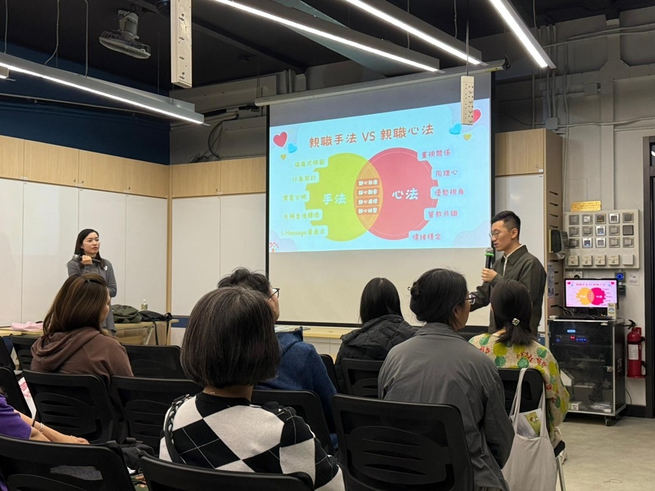 本校於2025年12月5日晚與新生精神康復會合辦《家‧心澄》家長講座,旨在協助家長應對育兒挑戰,指導他們緩解壓力及調節情緒。透過講員的信息和放鬆方法,幫助家長可以在日常生活照顧自己中的身心靈。